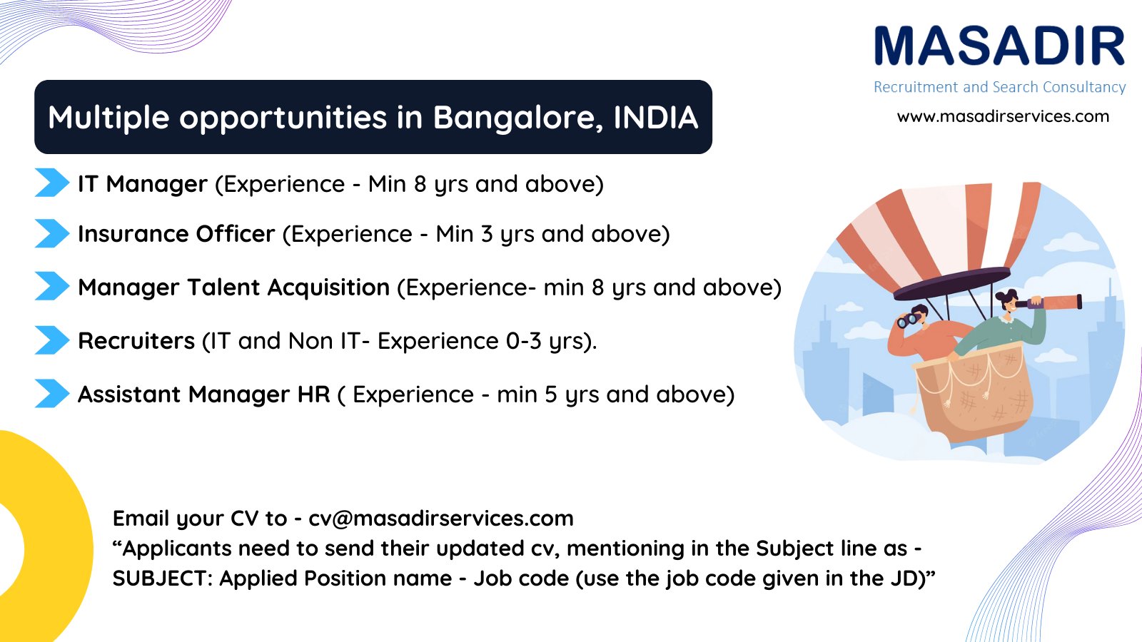 Masadir On Twitter Multiple Opportunities In Bangalore India Send Resume To Cv Masadirservices Com Visit Https T Co 49piegyuiu Opportunities Bangalore Resume Itmanager Insuranceofficer Recruiter Talentacquisition Hrmanager Employment
